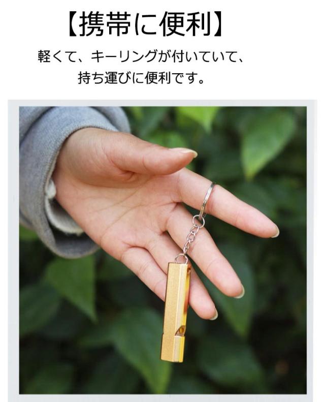 | 【大音量】工夫をしなくて吹きやすくて音もよく響きます。大歓声の中でも響き渡る大音量のホイッスルです。それに、ダブルチューブのデザインなので、遠くまで更に聞こえます。 【携帯に便利】軽くて、キーリングが付いていて、持ち運びに便利です。 【活躍場合】緊急用、防災用、アウトドア、キャンプ、サバイバル、審判、先生、コーチ、ライフガードなどに適用しています。プレゼントとして子供またはお年寄りに差し上げてもいいです。 | |