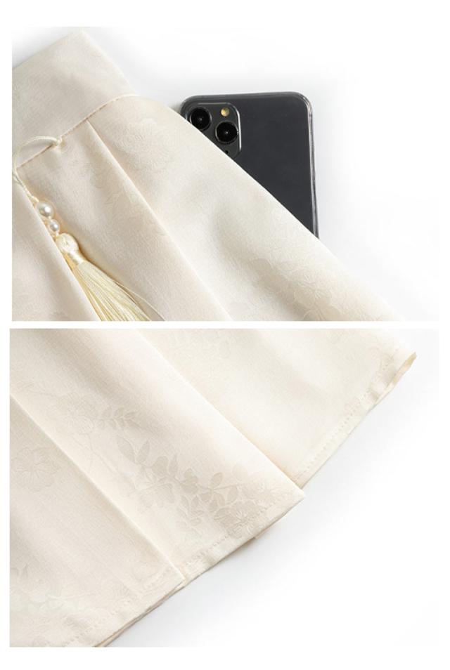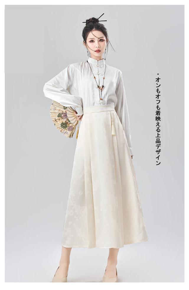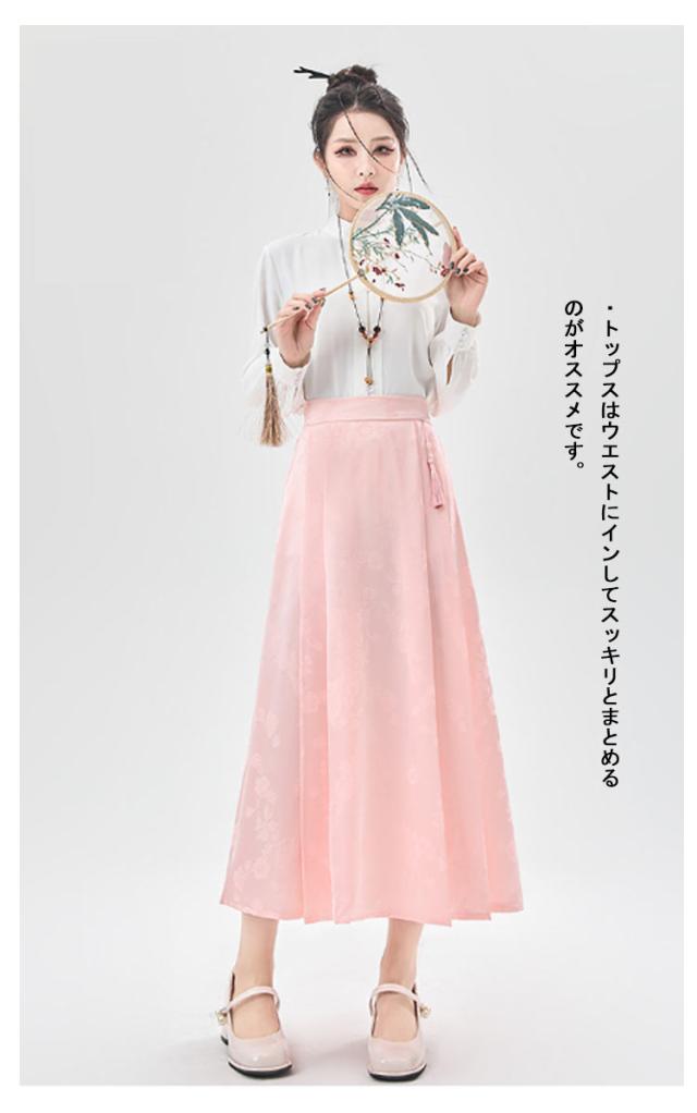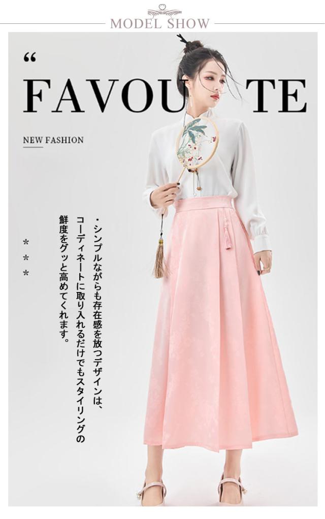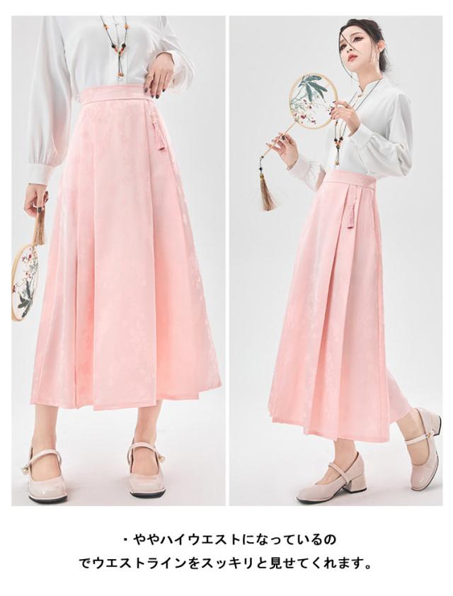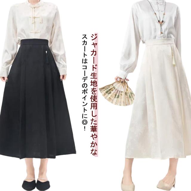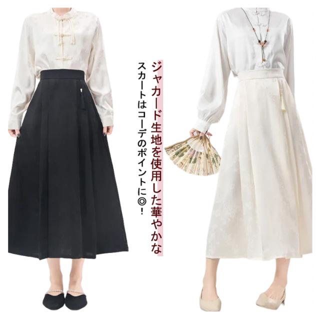 ジャガード チャイナドレス Aライン タック入り レディース ウェストゴム ロング丈 ポケットあり スカート 花柄 スカート オリジナル ボトムス チャイナ風 フェミニン ガーリー 春