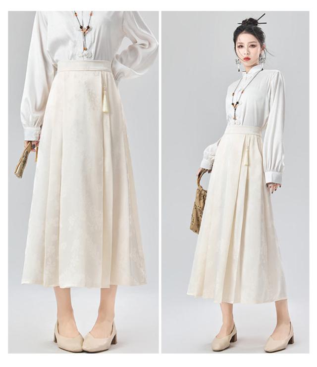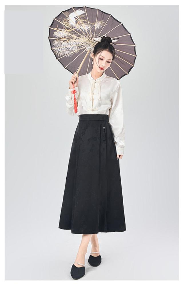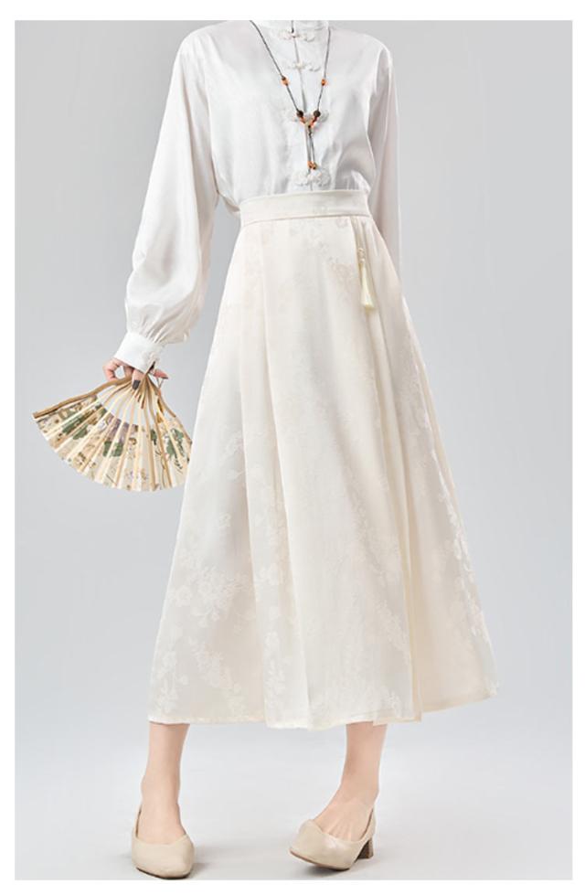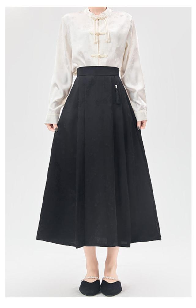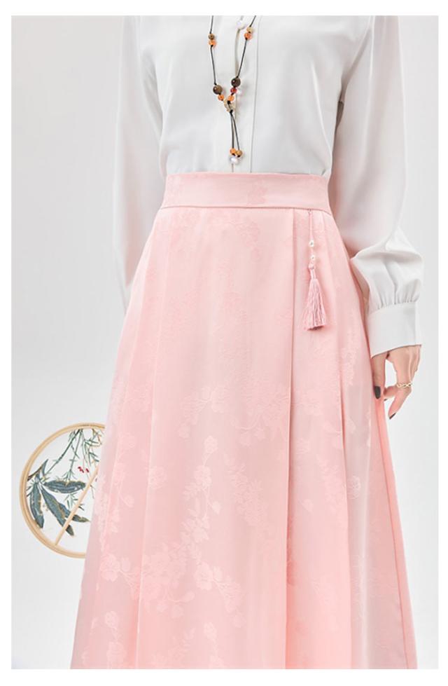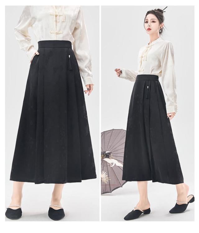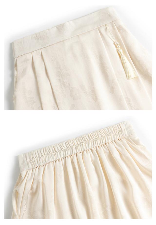 ジャガード チャイナドレス Aライン タック入り レディース ウェストゴム ロング丈 ポケットあり スカート 花柄 スカート オリジナル ボトムス チャイナ風 フェミニン ガーリー 春