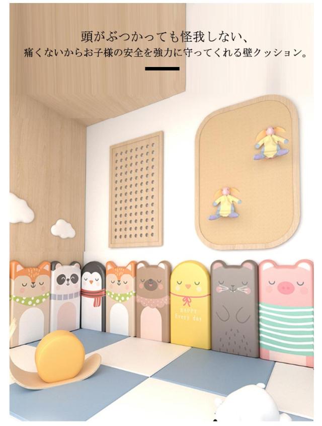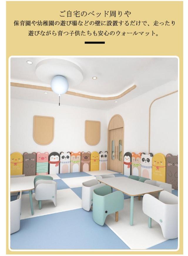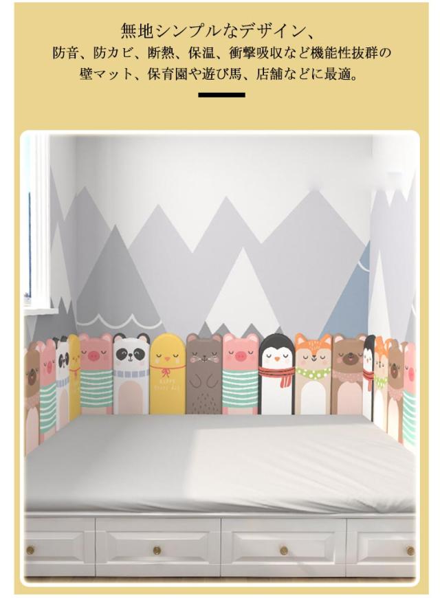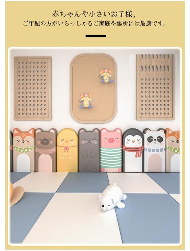 | かわいいアニマル柄のウォールクッション。【テープ付き】【30*60cm 極厚3cm】【4枚セット】 頭がぶつかっても怪我しない、痛くないからお子様の安全を強力に守ってくれる壁クッション。 赤ちゃんや小さいお子様、ご年配の方がいらっしゃるご家庭や場所には最適です。 環境に優しく、安全無毒の壁マット。どこにも似合う壁クッション。 高密度ウレタンスポンジ内蔵で、弾力性のよいクッション性を持ち、ぶつかった時の衝撃を和らげ、吸収し、赤ちゃんや小さいお子様、ご年配の方がいらっしゃるご家庭や場所には最適です。 表面は柔らかい防水素材を採用し、汚れがつきにくく、お掃除もかんたん。 無地シンプルなデザイン、防音、防カビ、断熱、保温、衝撃吸収など機能性抜群の壁マット、保育園や遊び馬、店舗などに最適。 ご自宅のベッド周りや保育園や幼稚園の遊び場などの壁に設置するだけで、走ったり遊びながら育つ子供たちも安心のウォールマット。 | |