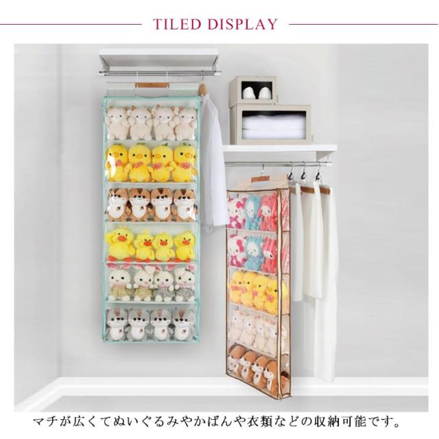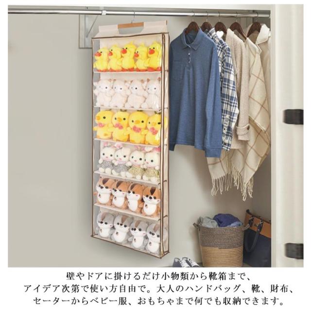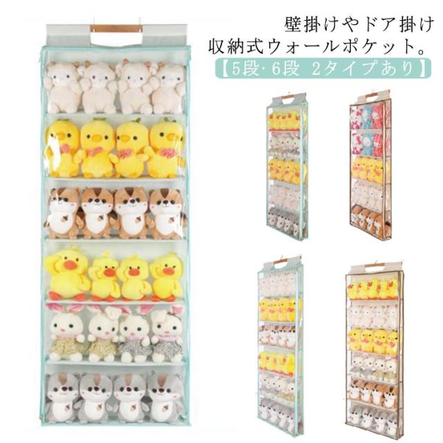 ぬいぐるみ 6段 収納 5段 吊り下げ 透明 ぬいぐるみウォールポケット コレクションケース 壁掛け 大容量 収納ボックス コレクション ウォールポケット 収納ケース ディスプレイ 透明窓付き 見せる収納 中心可視 防塵 防水 バッグ収納 カバン収納