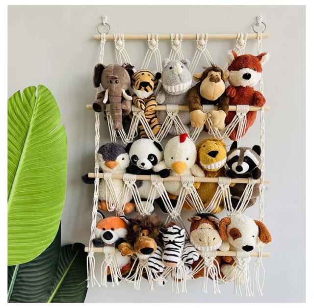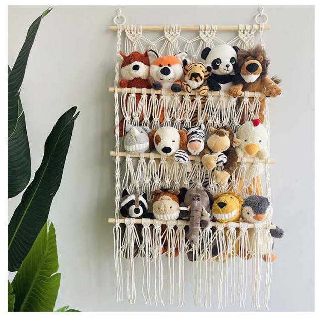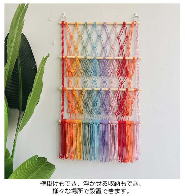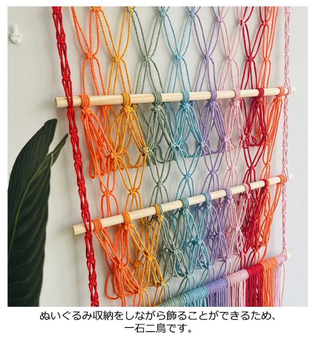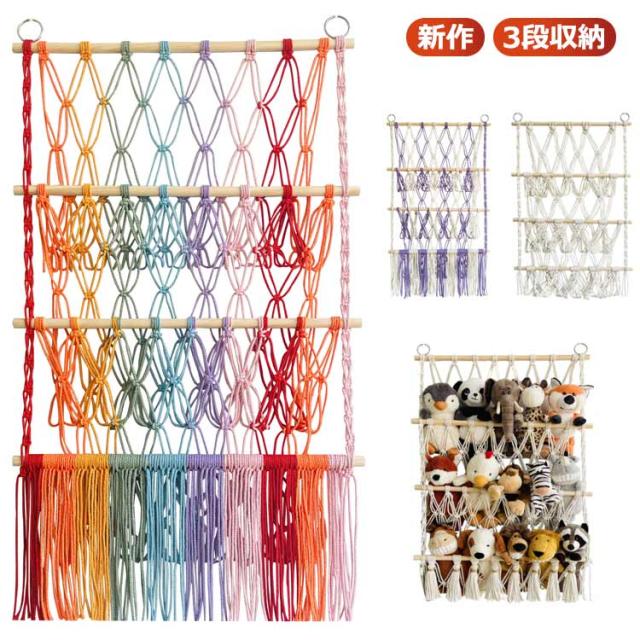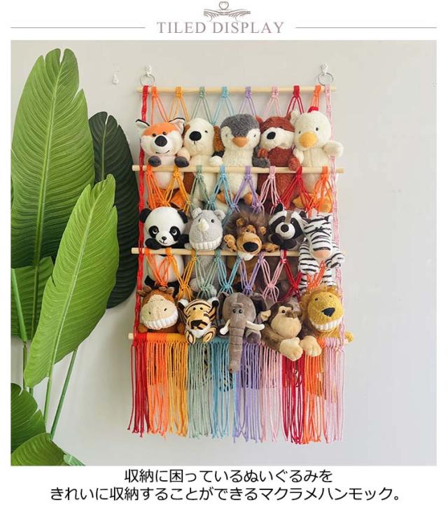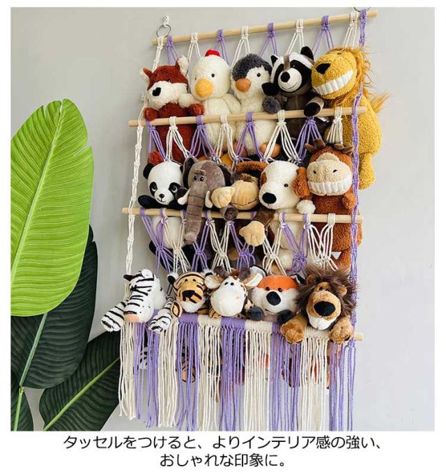 | 【新作!】 【3段収納】 収納に困っているぬいぐるみをきれいに収納することができるマクラメハンモック。 壁掛けもでき、浮かせる収納もでき、様々な場所で設置できます。 ぬいぐるみ収納をしながら飾ることができるため、一石二鳥です。 タッセルをつけると、よりインテリア感の強い、おしゃれな印象に。 飾りたいぬいぐるみの大きさに合わせて、つくれるのも魅力です。 | |