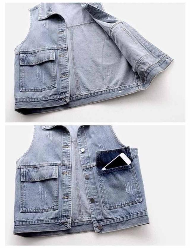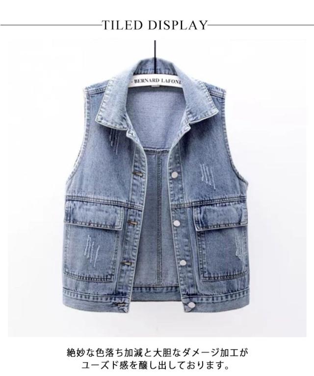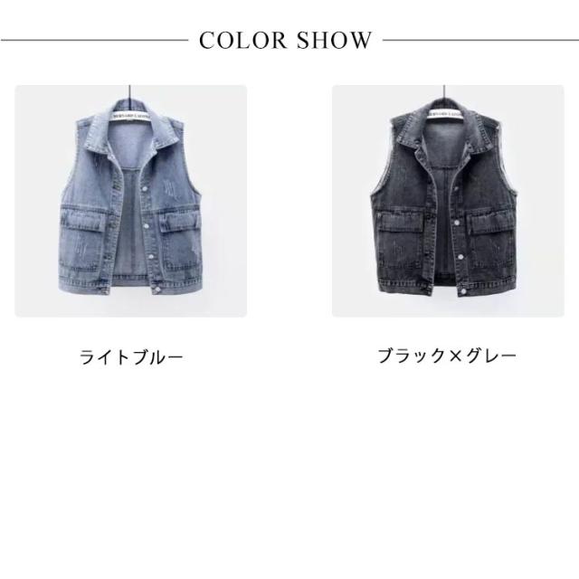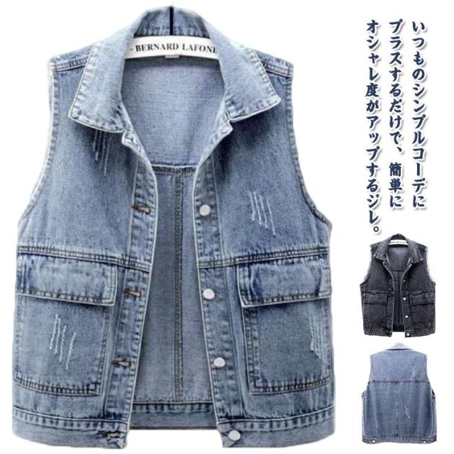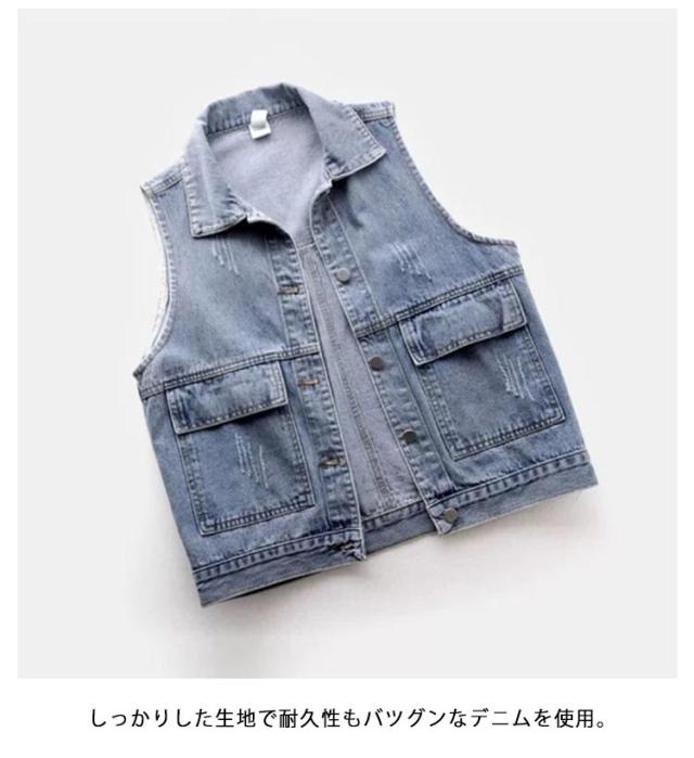 秋 トップス レディース 春 ショート丈 デニムベスト カジュアル ジレ デニムジレ 前開き デニムジャケット ノースリーブ 薄手 羽織り デニム お洒落 大きいサイズ シンプル デニムアウター 通学 カジュアル 着まわし 夏