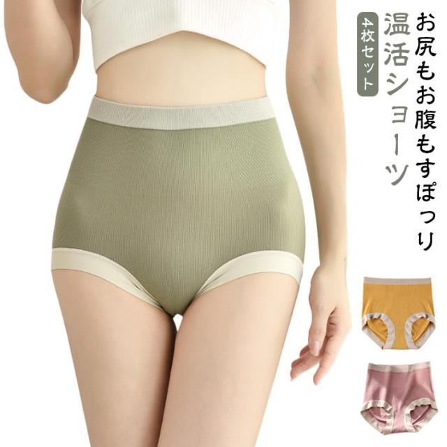 食い込まない 温活 ヒップアップ 締め付けないショーツ ハイウェストショーツ 子宮温活 温活ショーツレディース 女性 あったか下着 深履き 4枚セット 美尻 冷えケア 産後 骨盤ケア 美腹 ガードルショーツ サニタリーショーツ インナー