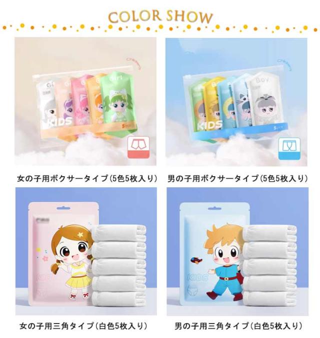 | 色 | 女の子用ボクサータイプ 男の子用ボクサータイプ 女の子用三角タイプ 男の子用三角タイプ |