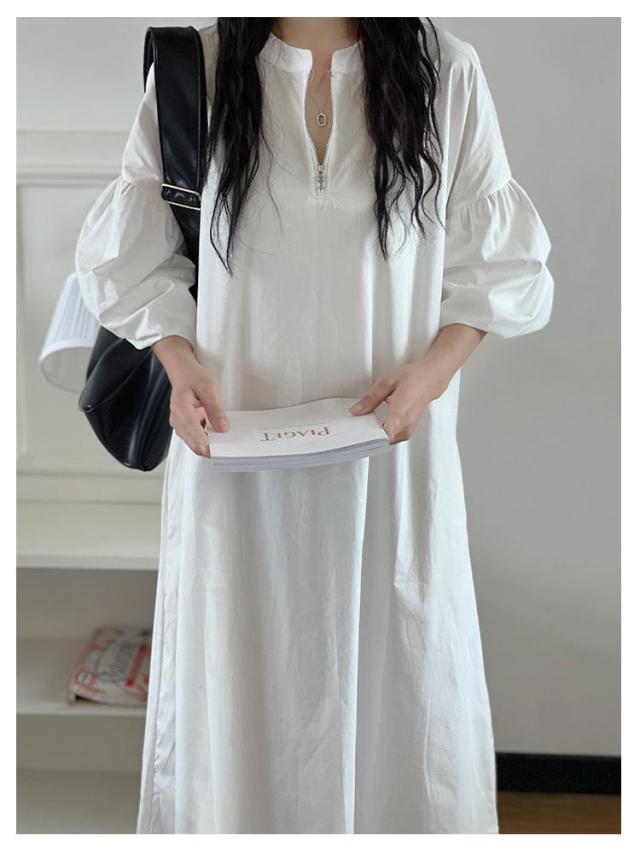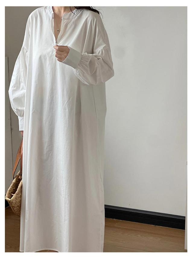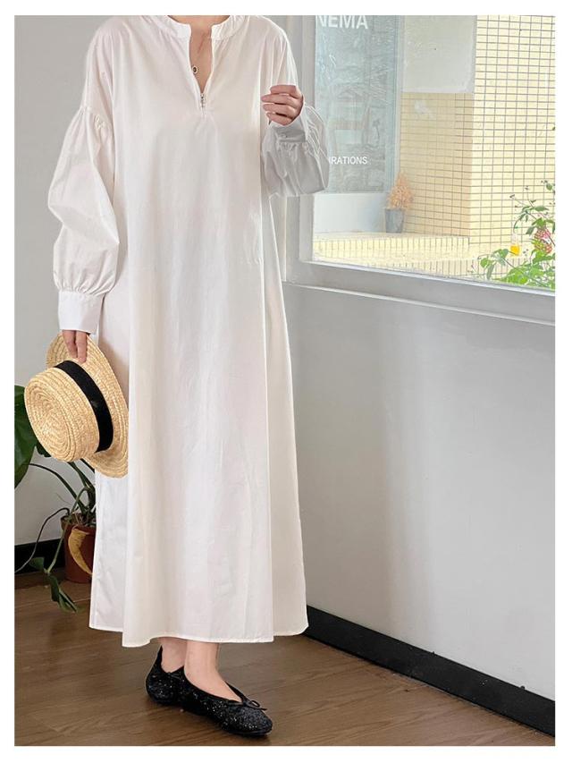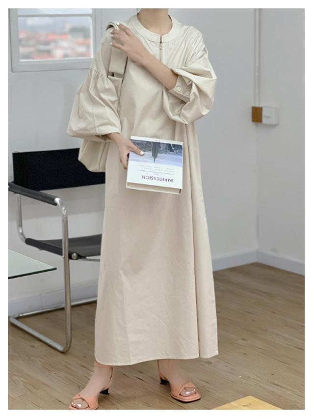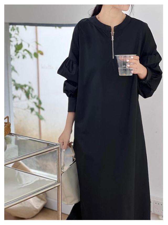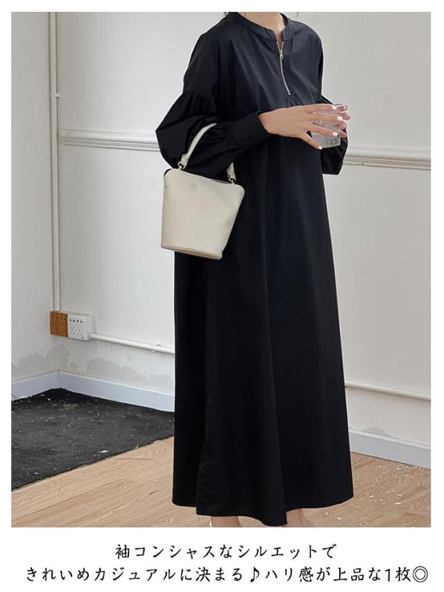 ロングワンピース ワンピース ワンピース マキシ ボリューム袖 ロング ハーフジップワンピース 丈 ハーフジップ ワイドサイズ ゆったり 長袖 レディース ロングワンピ 春 秋 Aライン ロング丈 カジュアル 無地 大人
