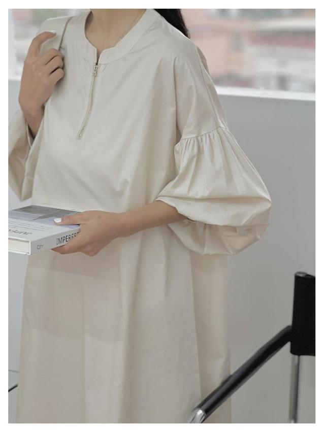 | 大人可愛いぼわん袖 ハーフジップワンピース 立体感のある袖が女性らしい抜け感を演出♪ 袖コンシャスなシルエットできれいめカジュアルに決まる♪ハリ感が上品な1枚◎ | |