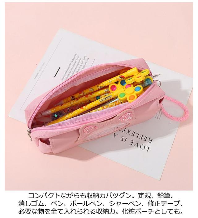 キラキラ レザー ペン 女の子 三層 大容量 筆箱 ふでばこ 革 ペンケース キャンバス レディース 子とも ネコフェイス ペンポーチ 万年筆 ファスナー コンパクト キッズ 女子 高校生 ポーチ 化粧ポーチ ペン入れ ペンケース 対応 文房具 文具 収納 仕分け おしゃれ
