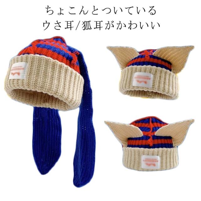 猫耳 女子 リブ キッズ リブ ぼうし 女性 大人 レディース ウさ耳 ニット帽子 耳付き ビーニー 子供 狐耳 キャップ 帽子 編み 耳 ニット帽 女の子 男の子 ニットキャップ おしゃれ かわいい 無地 カジュアル 韓国 防寒 秋冬