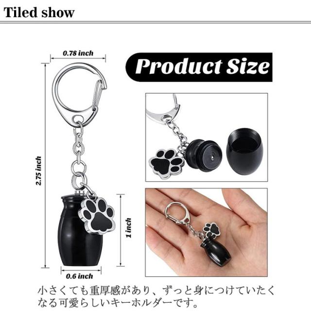 | 大切なペットの手元供養ができる骨壷キーホルダーです。 ご遺骨や遺毛や爪を納めて大切なアクセサリーとして身につければ、どんなときでもそばで温かく見守ってくれます。 丈夫で錆びにくいステンレス素材を使用しているので、湿気や汗に強くお風呂場やプールサイド、ジムなどに持ち込むことができます。 小さくても重厚感があり、ずっと身につけていたくなる可愛らしいキーホルダーです。 ※パッキンはありませんので完全防水ではありません。 | |