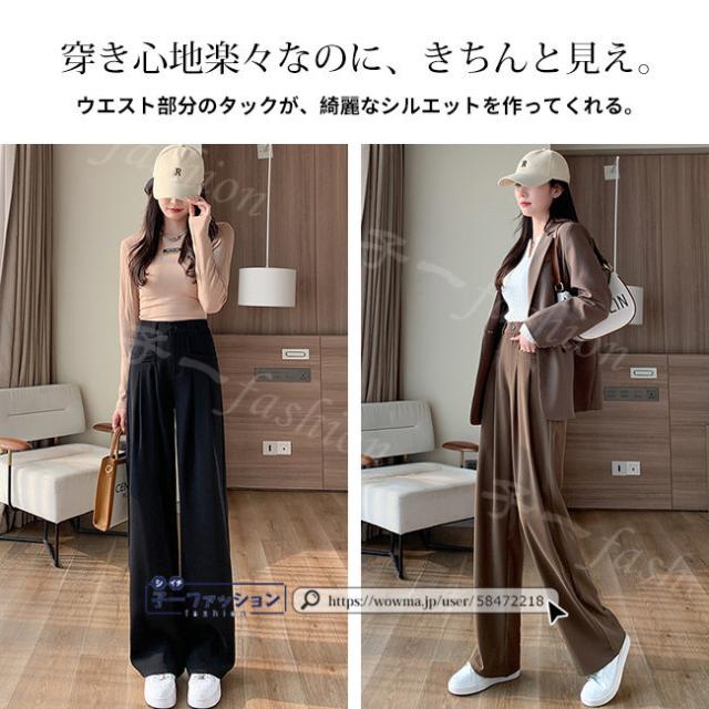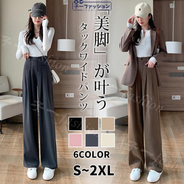 タックワイドパンツ 春新作 新作 ワイドパンツ パンツ タックパンツ ゆったり美脚 ハイウエスト レディース イージーパンツ リラックス きれいめ カジュアル ポケット トレンド 就職活動 オフィス 通勤 秋冬 バレンタイン