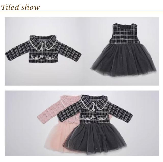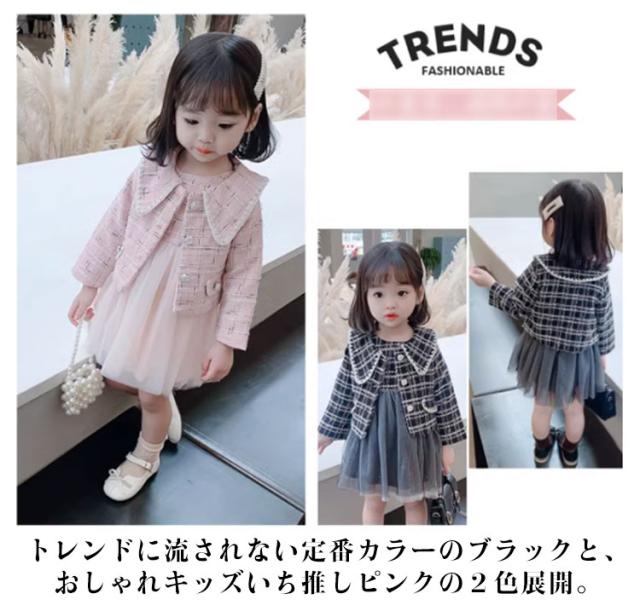 子供服 ツイードジャケット ツイード ジャケット チュールワンピース 2点セット 子供 キッズ セットアップ 入学式 入園式 長袖 チェック キッズ ツイードワンピース ツイードワンピ チュールワンピ 女の子 卒園式 春 ゆったり