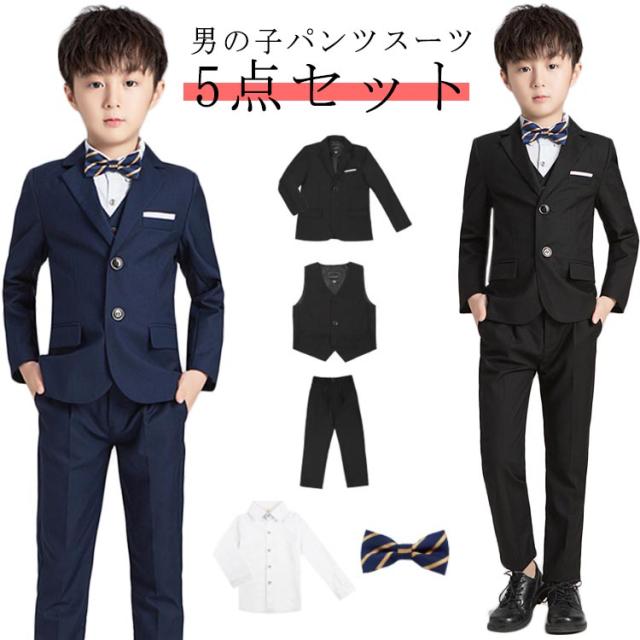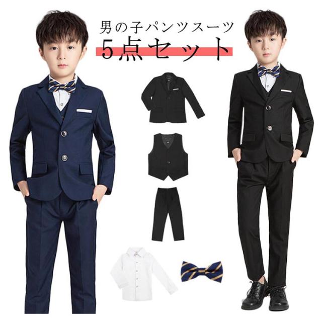 子供 男児 子供 シャツ フォーマル 5点セット キッズ ズボン お受験 キッズスーツ 蝶ネクタイ 男の子 ベスト ネイビー 卒業式 フォーマルスーツ 上下セット スーツ ブラック ボーイズ スリム 細身 ピアノ 発表会 入園式 七五三 結婚式 卒園式 冠婚葬祭 春 秋