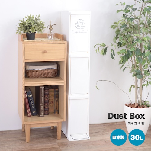 ごみ箱 ゴミ箱 30L 30リットル 日本製 国産 ダストボックス 3段 縦 スリム ペダル付き フットペダル おしゃれ シンプル リビング ダイニング 部屋 トイレ 玄関 キッチン 屋外 屋内 分別 コンパクト 省スペース カフェ ナチュラル かわいい 一人暮らし ホワイト azm 家具