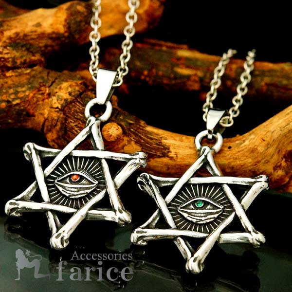 六芒星 ダビデスター 小粒 一粒石 瞳 カラーアイ 目玉 ストーン スター 星 プロビデンスの目(神の目) リバーシブル メンズ レディース ユニセックス ネックレス 2カラー 【グリーン or レッド】