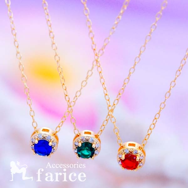 ・1粒石カラージルコニアを極小8粒の透明ジルコニアで囲んだ高級感のあるミニサイズレディースネックレス