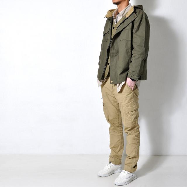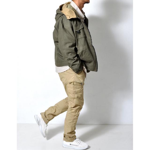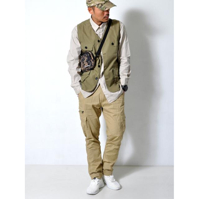 カーゴポケットや右腿のジッパーポケット、バックのフラップポケットなど