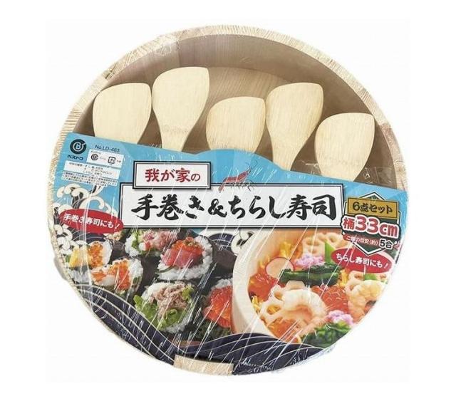 リバティーコーポレーション 手巻き ちらし寿司 6点セット 寿司桶 33cm 約5合 しゃもじ 5本 LD-463 我が家の手巻き&ちらし寿司桶【送料無料】