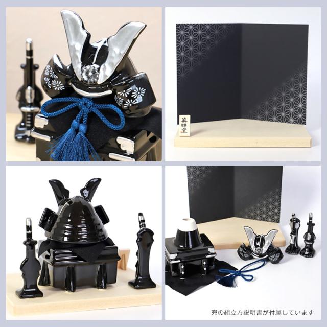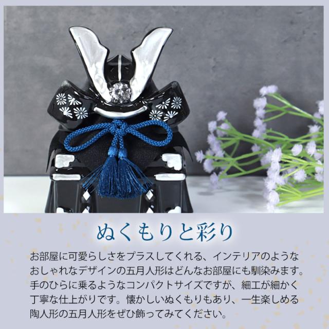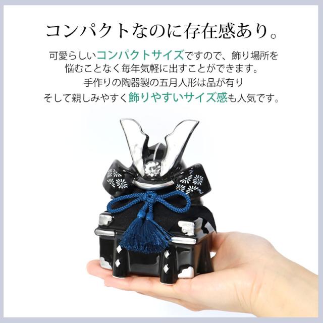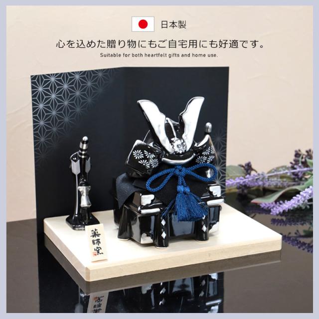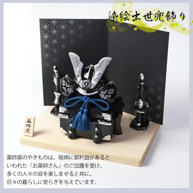 五月人形 染絵出世兜飾り 漆黒 薬師窯 コンパクト ミニ おしゃれ 兜飾り かっこいい 端午の節句 平飾り こどもの日 子供の日 陶器 焼物 弓矢 刀 初節句 節句飾り 小さい 小さめ インテリア 玄関 置物 人形 人気 日本土産 送料無料 ブラック モダン 御洒落