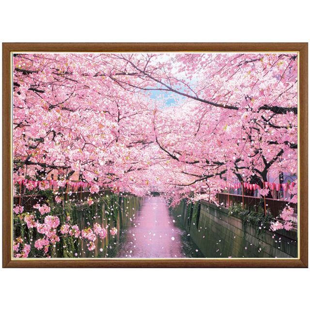 ジグソー日本の風景「目黒川の桜並木」フレームセット(600P) (パズル パネルセット MP054L 600ピースジグソー 53x38cm 桜風景ジグソーパズル)