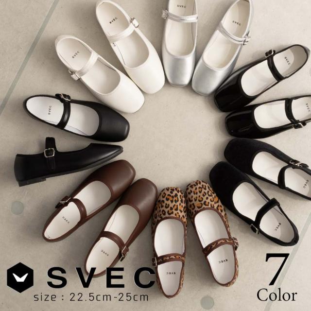 SVEC ぺたんこパンプス ローヒール ストラップパンプス ぺたんこヒール キッズシューズ ママ 小学生 お揃い フォーマル 靴 シューズ レディース ブラック エナメル ベロア レオパード シルバー ホワイト 黒 白 シュベック ブランド