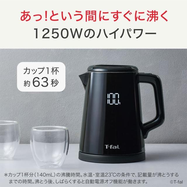 T-fal ティファール ディスプレイ ロック コントロール 0.8L ブラック KO8568JP 送料無料 電気ケトル 0.8L コードレス 温度調整 保温 二重構造