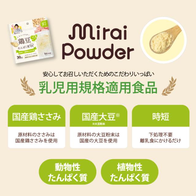 ミライパウダー 【鶏豆パウダー】 45g タンパク質 離乳食 パウダー 国内製造 国産鶏ささみ 国産大豆100% 細川モモ監修 離乳食7ヶ月から ふりかけ 離乳食だし 乳児用規格適用食品