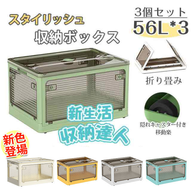 【冬支度応援★P8%還元!&クーポンあり】【即納品】収納ボックス 折りたたみ 3個セット 56L大容量 透明ボックス 5面開閉 隠れキャスター付き コンテナー 組立簡単 衣装布団 収納ケース プラスチック 積み重ね 新生活 おしゃれ 移動便利agesugi_sis