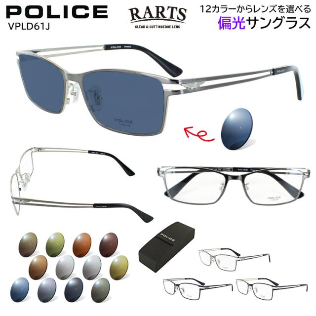 ポリス 偏光サングラス メンズ RARTS 偏光レンズ 度付き可 運転用 ドライブ 釣り 乱反射防止 UVカット 紫外線カット 選べる12色 グレー系 ブルー系 グリーン系 ブラウン系 バス釣り 渓流釣り 海釣り ロードバイク POLICE チタンフレーム 軽量 VPLD61J 0568 0531 0N41