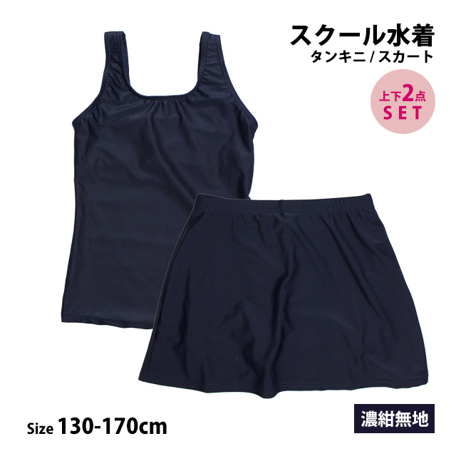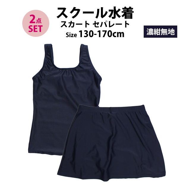 スクール水着 女子 女の子 セパレート スカート 上下 小学生 学校 水着 子供 濃紺 無地 130cm 140cm 150cm 160cm 170cm