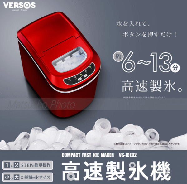 ベルソス 製氷機 自動製氷機 高速製氷器 氷 製氷器 家庭用製氷機 高速製氷マシン 氷専用 コンパクト高速製氷機 卓上 高速 製氷 家庭用 高速製氷機 VS-ICE02 レッド