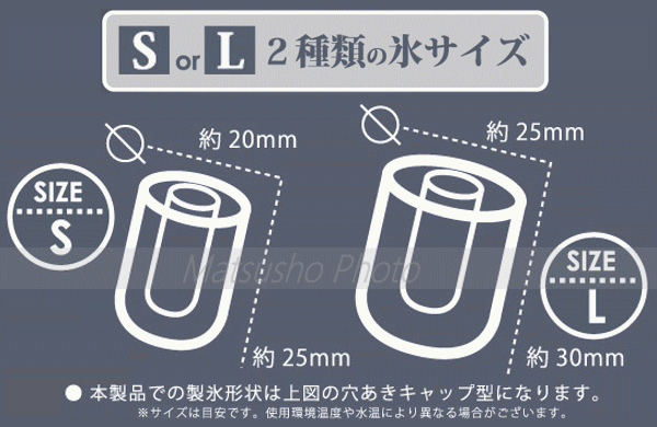 ※本製品での製氷形状は穴あきキャップ型になります。