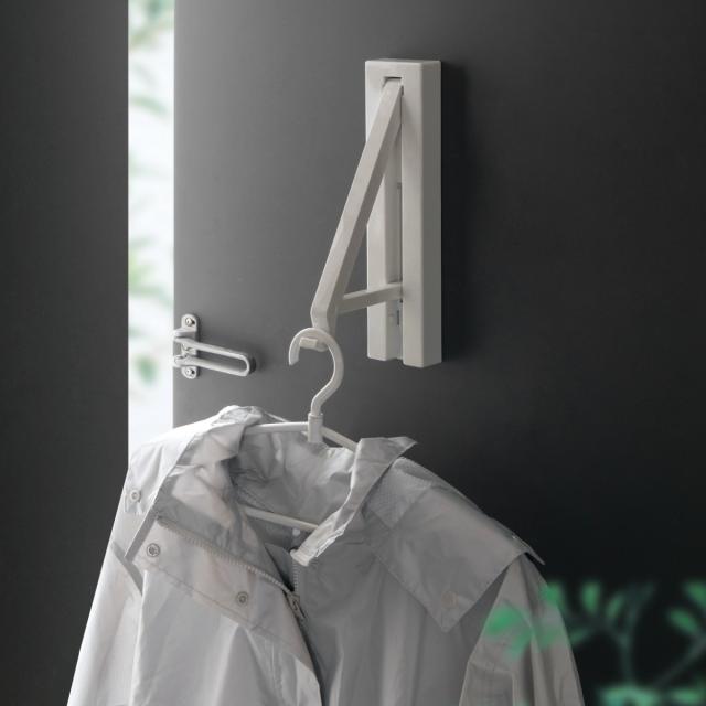 濡れたレインコートをそのまま玄関で干すのに便利なハンガーラックです。使用時には簡単に開けて、使用後はスッキリ収納でき、玄関で邪魔になりません。浴室で干すハンガーとしてもピッタリです。