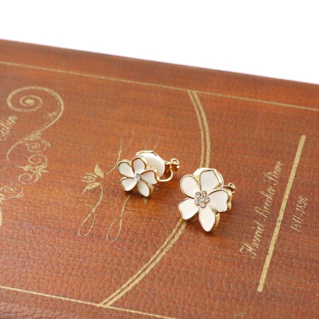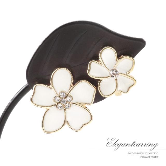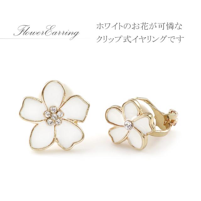 イヤリング レディース フラワー お花 可愛い アクセサリー アシンメトリー 左右非対称 花 モチーフ ゴールド ホワイト クリップ式 付けやすい ワンタッチ クリップイヤリング お花アクセサリー 白い花 かわいい おしゃれ 個性的 レトロ 女性 白色 母の日 ギフト 2026