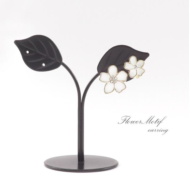 爽やかなホワイトのフラワーが可愛いイヤリングです。