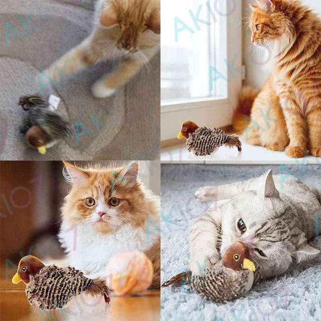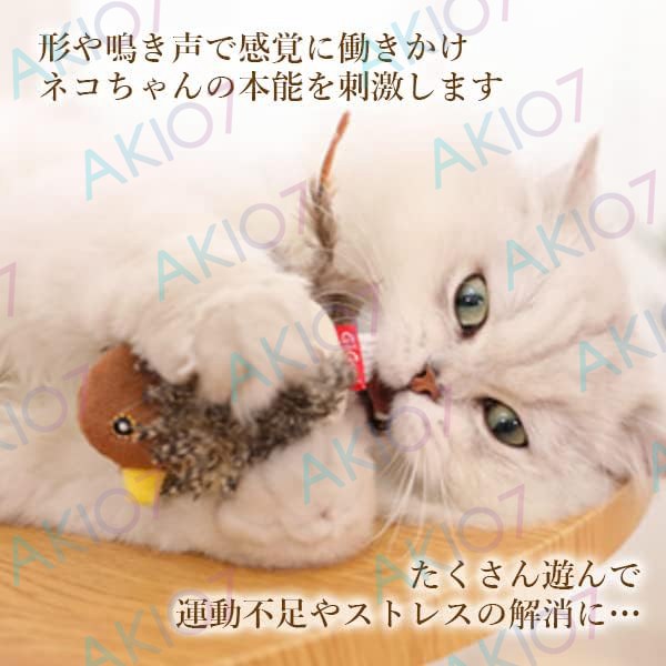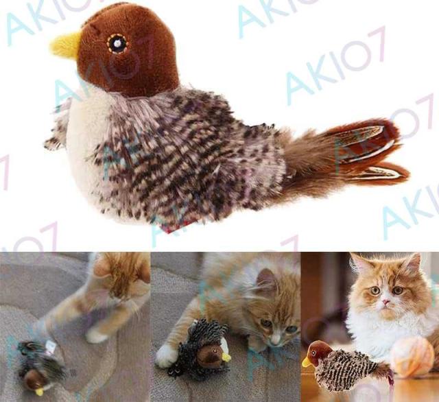 【即納】送料 猫 おもちゃ 鳥 鳴く すずめ型 ストレス解消 鳴き声 猫用おもちゃ 羽毛おもちゃ ネコ リアル 遊ぶ 運動不足解消