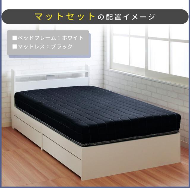 寝具 シンプル ショートベッド Stina スティナ マットレスセット 収納棚付き ベッド下収納 ポケットコイル 体圧分散 コンパクト 引き出し2杯 新生活 一人暮らし