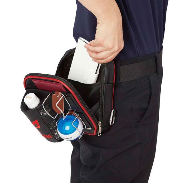 ハタチ メンズ レディース ファスナーが全開するマルチポーチ パークゴルフ グランドゴルフ ボールダブルタイプ バッグ ボールホルダー2個付き ブラック 黒 レッド 赤 送料無料 HATACHI PH7935