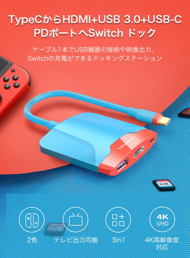Nintendo Switch ドック ニンテンドー スイッチ 有機ELモデル ドッキングステーション Type-C HDMI USB-A USB3.0 PDポート データ転送 コンパクト 持ち運び 便利