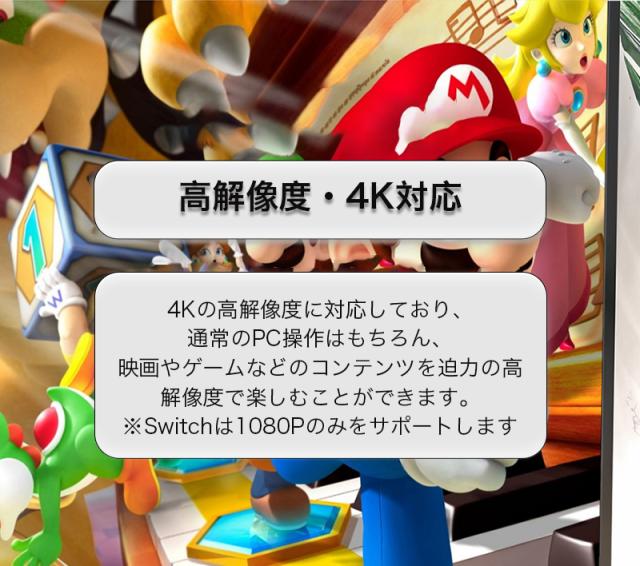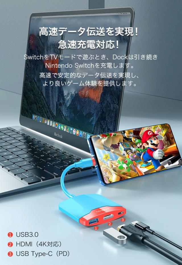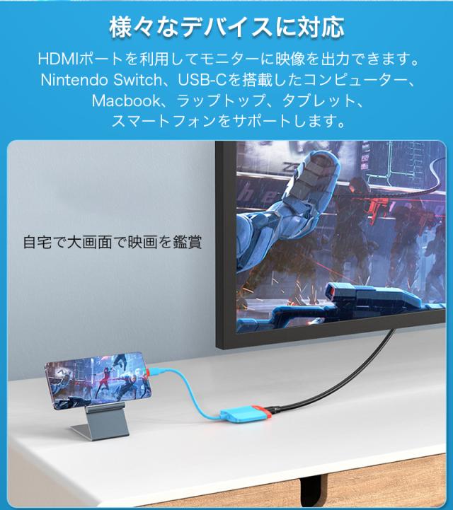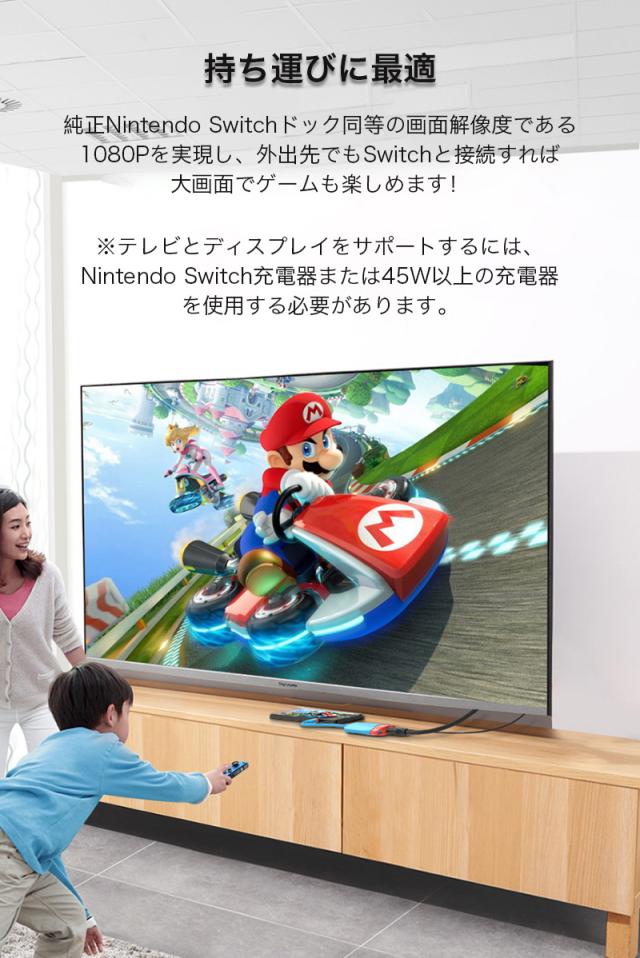 純正Nintendo Switchドック同等の画面解像度である1080Pを実現し、外出先でもSwitchと接続すれば大画面でゲームも楽しめます!