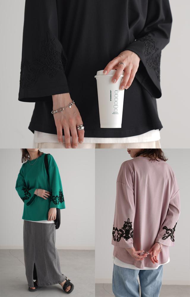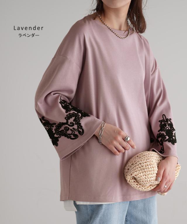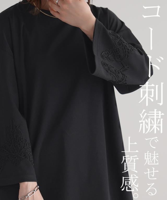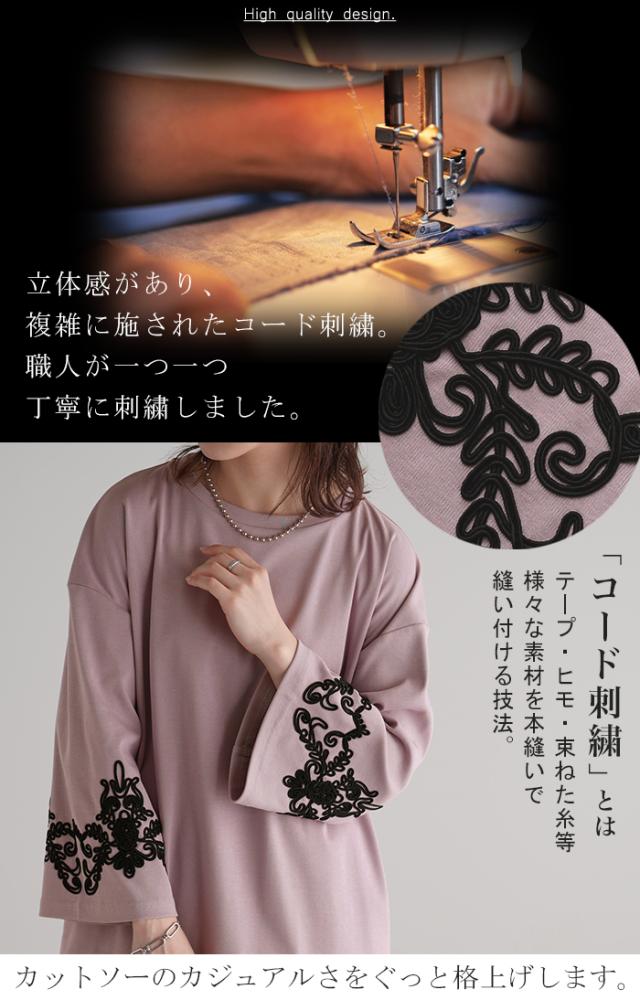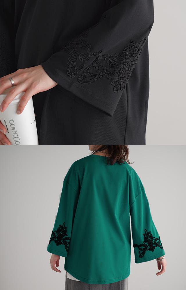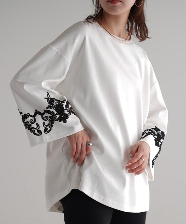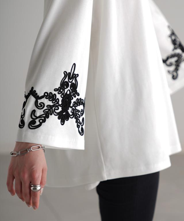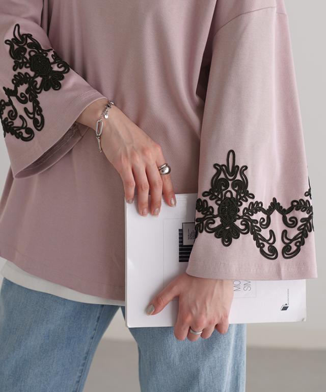コード刺繍使いで袖コンシャスの見映えがポイントのカットソーです。