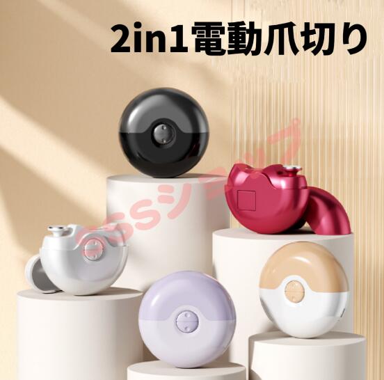 電動爪切り 自動爪切り 2in1 爪切り 電動つめきり 電動つめ削り 爪磨き 角質ケア 2段階スピード 爪研ぎ 安全 足用 子供 Type-C充電式