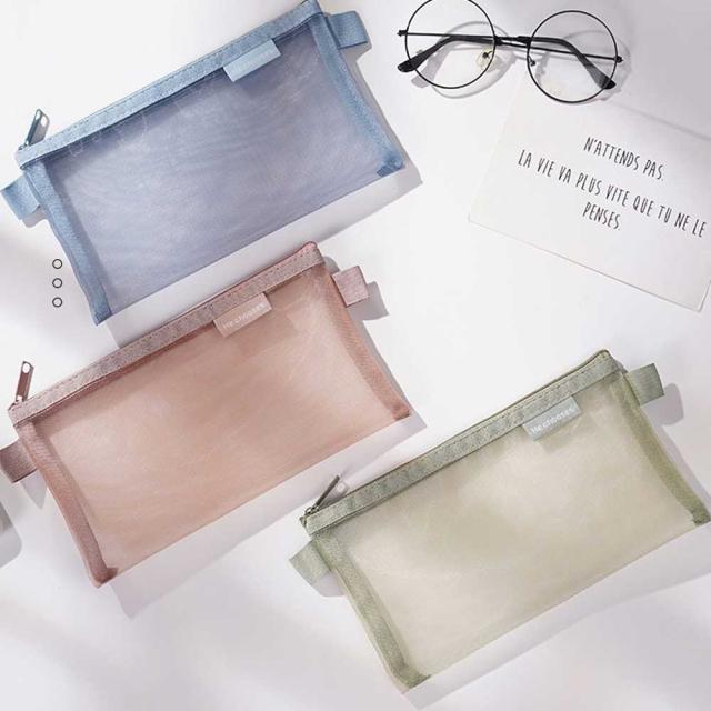 ペンケース メッシュ お洒落 シンプル 筆箱 学校 中身見える 透明 高校生 中学生 無地 クリアペンケース パステルカラー 大学生 文房具 筆記用具 通気性 デザイン