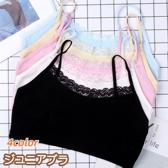 ジュニアブラ ファーストブラ 子供用 ジュニア ブラジャー 下着 ノンワイヤー ハーフトップ 無地 レース 小学生 中学生 カッ