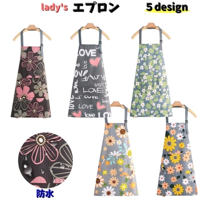 エプロン 首掛けエプロン 前掛け レディース 女性 婦人 キッチン雑貨 配膳用品 調理 腰紐 防水 胸当てエプロン フラワー お