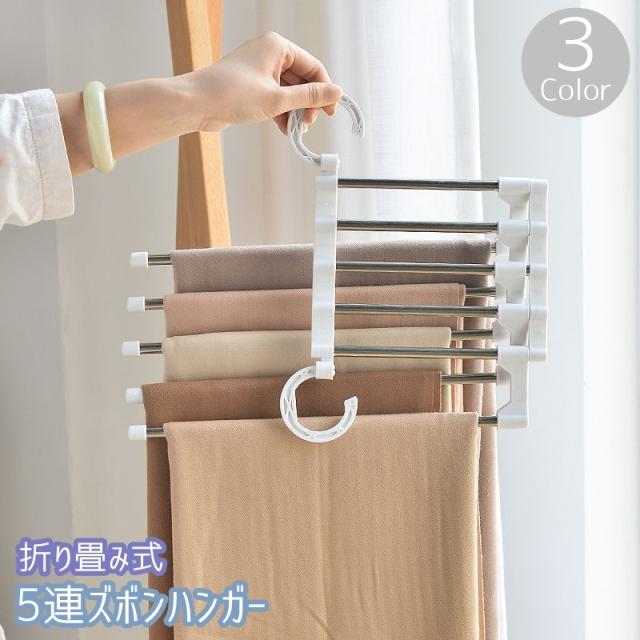 ズボンハンガー 折りたたみ ハンガー 5連 5本 洗濯 物干し クローゼット収納 収納 整理 整頓 スラックス パンツ ネクタイ