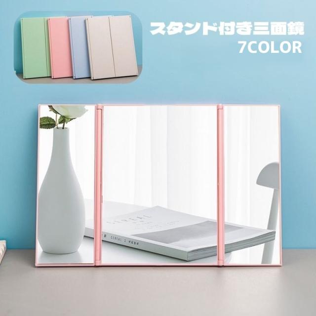 三面鏡 卓上ミラー スタンドミラー 折りたたみ 四角形 コンパクト スリム 持ち運び 自立 シンプル 折り畳み 化粧 メイクアッ