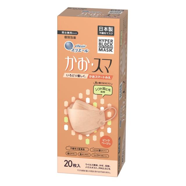◆商品名:(日本製 不織布)エリエール ハイパーブロックマスク かお・スマ ピンクベージュ 20枚 PM2.5対応