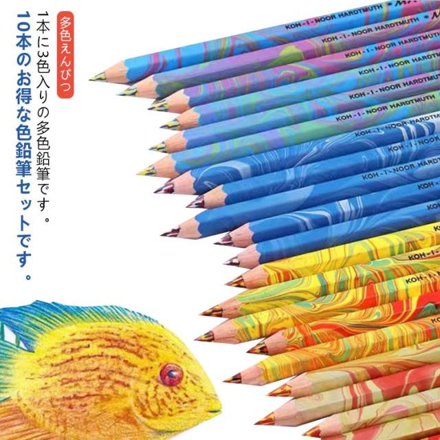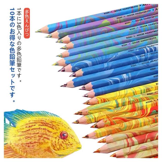 レインボー色鉛筆 えんぴつ 多色えんぴつ 丸軸 3色芯 カラフル 鉛筆 筆記具 レインボー色鉛筆 芸術 レインボー芯 多色えんぴつ 塗り絵 学生用 実用的 文具 レインボーえんぴつ 10本セット 色えんぴつ