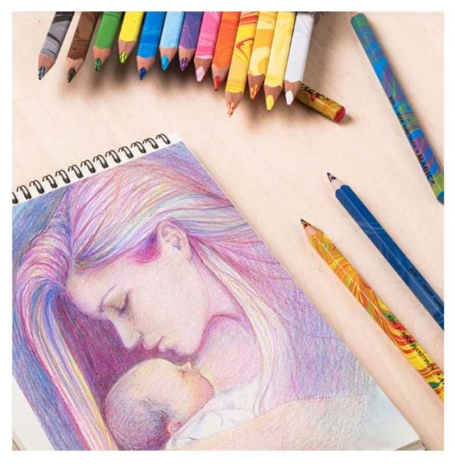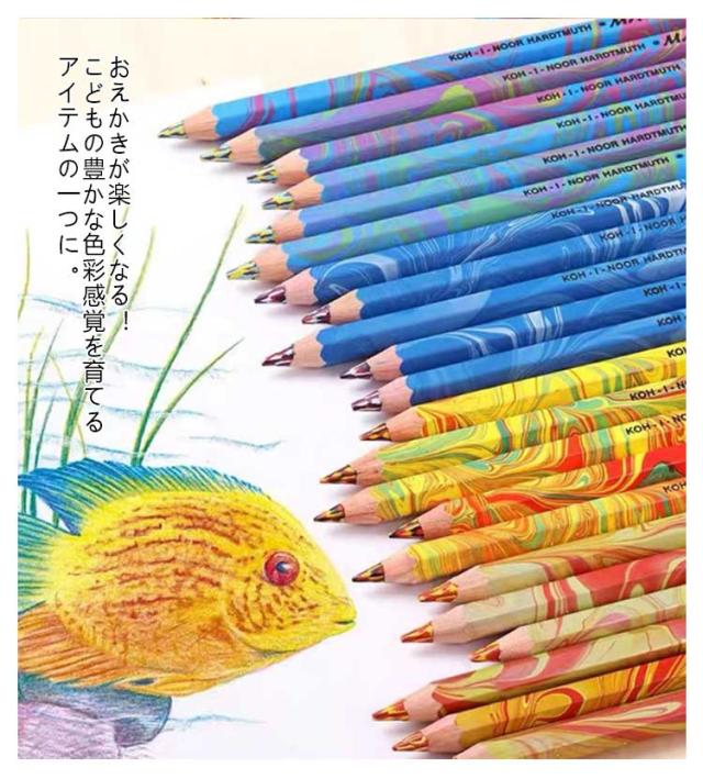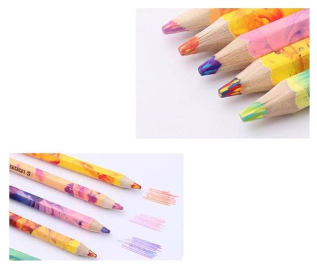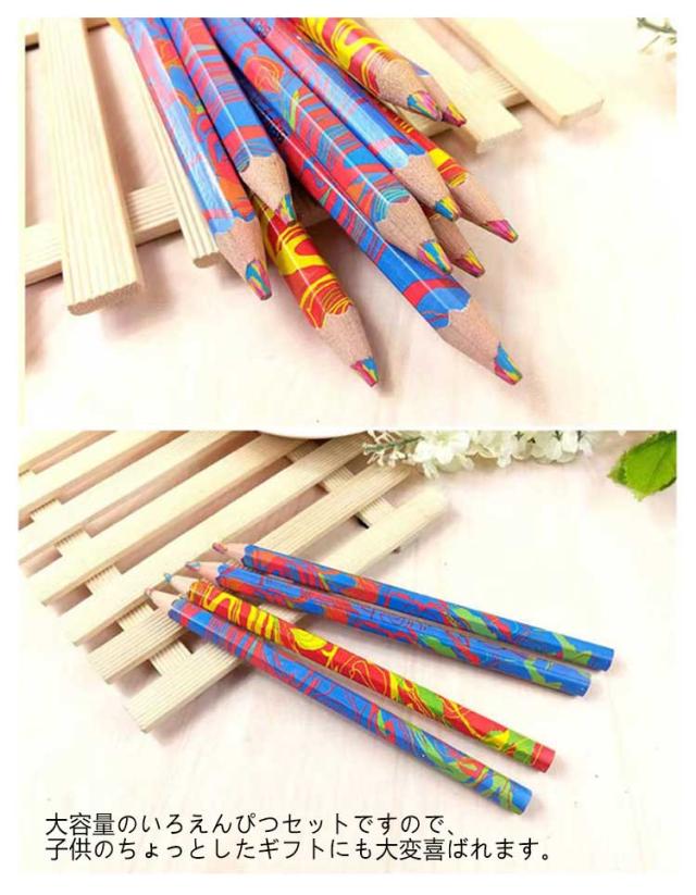 | 1本に3色入りの多色鉛筆です。10本のお得な色鉛筆セットです。 写真のように1本の中に3色の芯が金太郎飴のようにミックスされています。 角度により色が混ざって様々な虹色カラーを描くことができます。 おえかきが楽しくなる!こどもの豊かな色彩感覚を育てるアイテムの一つに。 大容量のいろえんぴつセットですので、子供のちょっとしたギフトにも大変喜ばれます。 | |